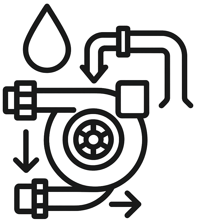 We confirm clean oil feed, correct restrictors, and a free drain. We check for metal and coking. Starved oil will cook a good turbo.